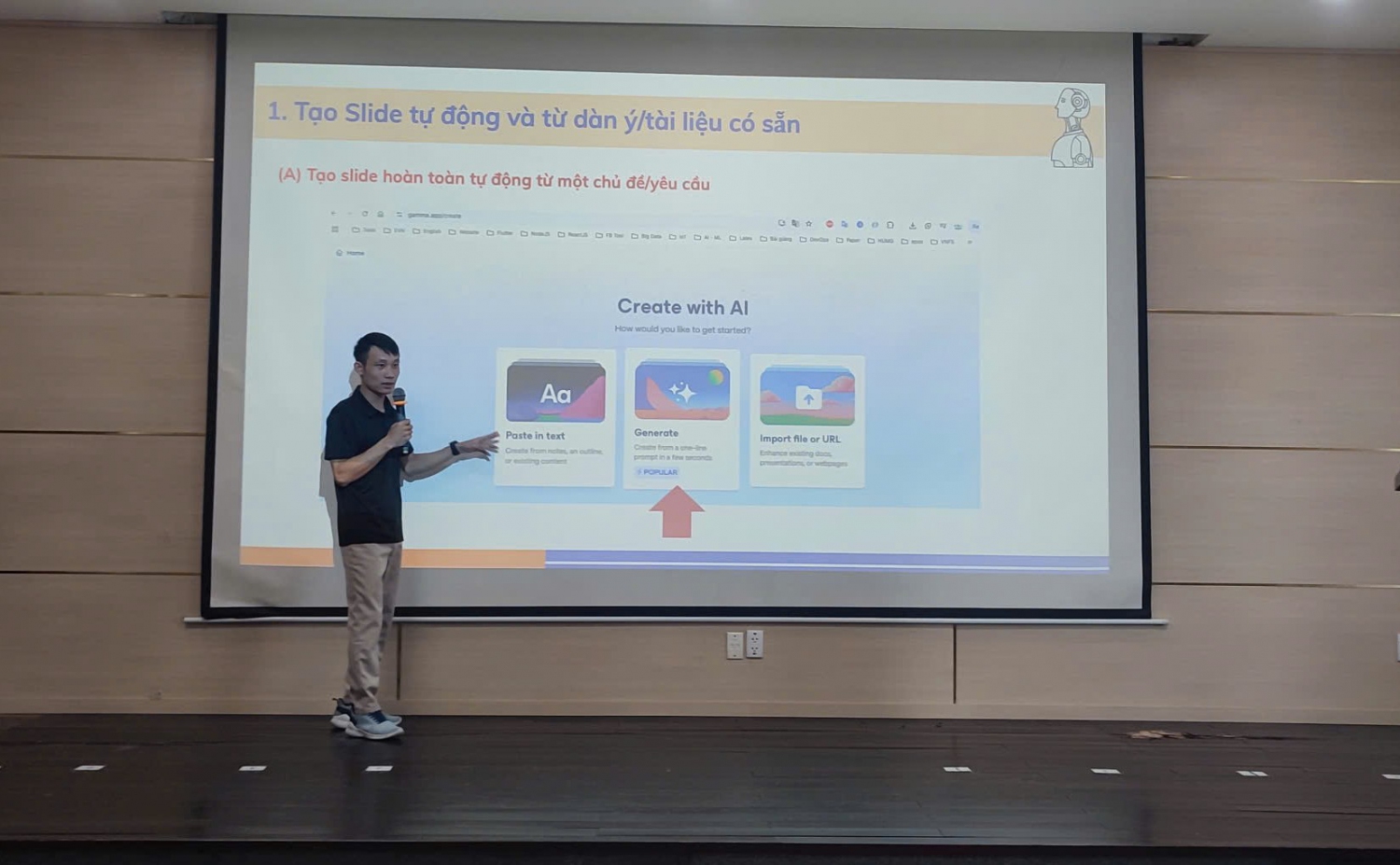 Lớp tập huấn được thiết kế với nội dung đa dạng, kết hợp hài hòa giữa lý thuyết và thực hành, tập trung vào 05 chủ đề lớn: (1) Tổng quan về chuyển đổi số và AI; (2) Trí tuệ nhân tạo tạo sinh (Generative AI); (3) Thực hành ứng dụng GenAI trong xử lý bảng tính; (4) Thực hành ứng dụng GenAI trong xử lý văn bản; (5) Thực hành ứng dụng GenAI trong bài thuyết minh, video, hình ảnh. Thông qua chương trình, học viên không chỉ được tiếp cận những khái niệm nền tảng của trí tuệ nhân tạo mà còn được thực hành trực tiếp trên các công cụ, ứng dụng hiện đại, giúp hiểu rõ hơn về tiềm năng và khả năng ứng dụng của AI trong công tác chuyên môn.