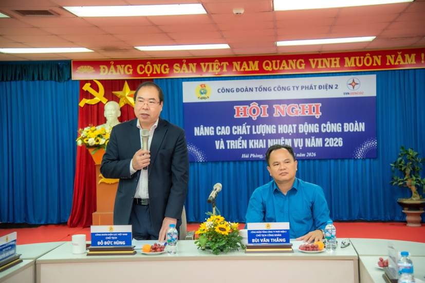 Thực hiện chương trình công tác năm 2026, nhằm tiếp tục nâng cao chất lượng hoạt động công đoàn gắn với nhiệm vụ chính trị và sản xuất - kinh doanh. Công đoàn Tổng công ty Phát điện 2 đã tổ chức Hội nghị nâng cao chất lượng hoạt động Công đoàn và triển khai nhiệm vụ năm 2026.