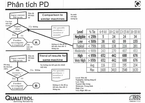Sơ đồ phân tích PD giúp đánh giá xu hướng tình trạng cách điện của máy phát điện