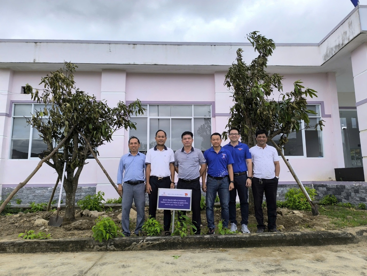 Ông Lê Quốc Vũ – Phó Tổng Giám đốc Tổng công ty Phát điện 2 (người thứ tư từ phải sang) và đại diện Đoàn thanh niên, Ban QLDA EVNGENCO2