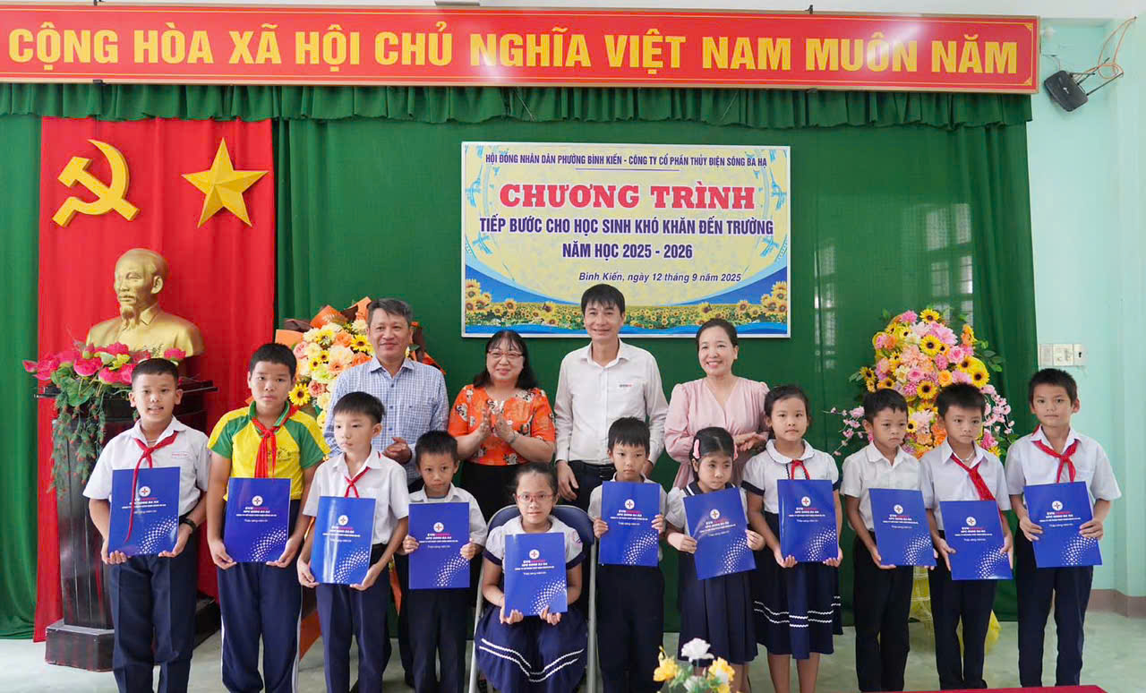 Tiếp tục chương trình Tiếp sức em đến trường, vào ngày 12/9, Công ty Cổ phần Thủy điện Sông Ba Hạ đã phối hợp với Hội đồng nhân dân phường Bình Kiến trao tặng 33 suất học bổng, mỗi suất 300.000 đồng tiền mặt cho 30 em học sinh ở Trường tiểu học Nguyễn Chí Thanh và Trường THCS Trần Cao Vân ở phường Bình Kiến, với mong muốn san sẻ phần nào những khó khăn vất vả với các em trong năm học mới.
