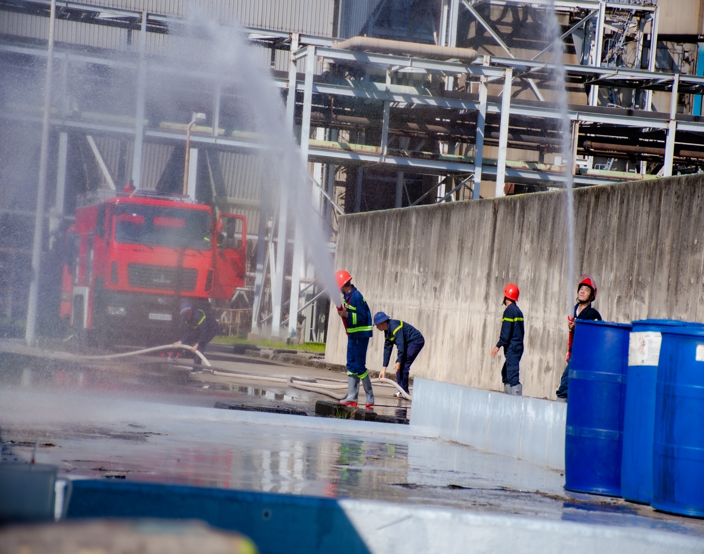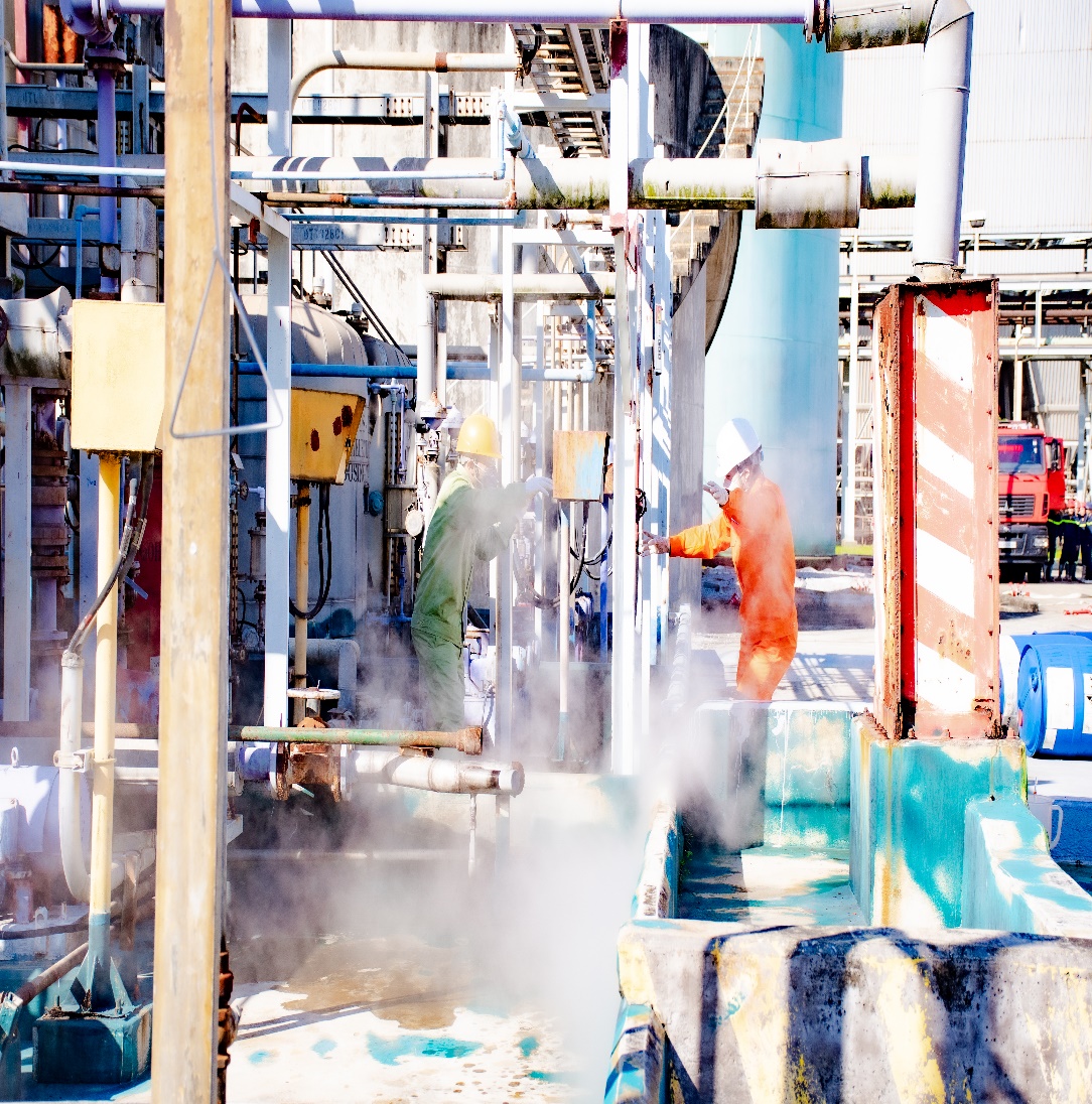 Trong tình huống sự cố giả định, Đường ống dẫn axit HCL vào bình chứa bất ngờ bị bục, gây rò rỉ lượng lớn axit HCl ra môi trường, toàn bộ lực lượng đã nhanh chóng triển khai nhiệm vụ theo đúng phương án được phê duyệt. Các phương tiện, trang thiết bị được bố trí hợp lý, bảo đảm an toàn. Các tình huống diễn tập được xử lý khẩn trương, chính xác, bám sát kịch bản. Công tác chỉ huy, điều hành được phối hợp nhịp nhàng giữa Ban chỉ đạo, Đội ứng phó sự cố hóa chất và các bộ phận hỗ trợ. Các yêu cầu an toàn được tuân thủ nghiêm túc, không xảy ra sự cố đối với người, thiết bị, khu vực diễn tập. Đây là cơ sở quan trọng để đánh giá hiệu quả công tác chuẩn bị, tính sẵn sàng của lực lượng ứng phó sự cố hóa chất tại Công ty.