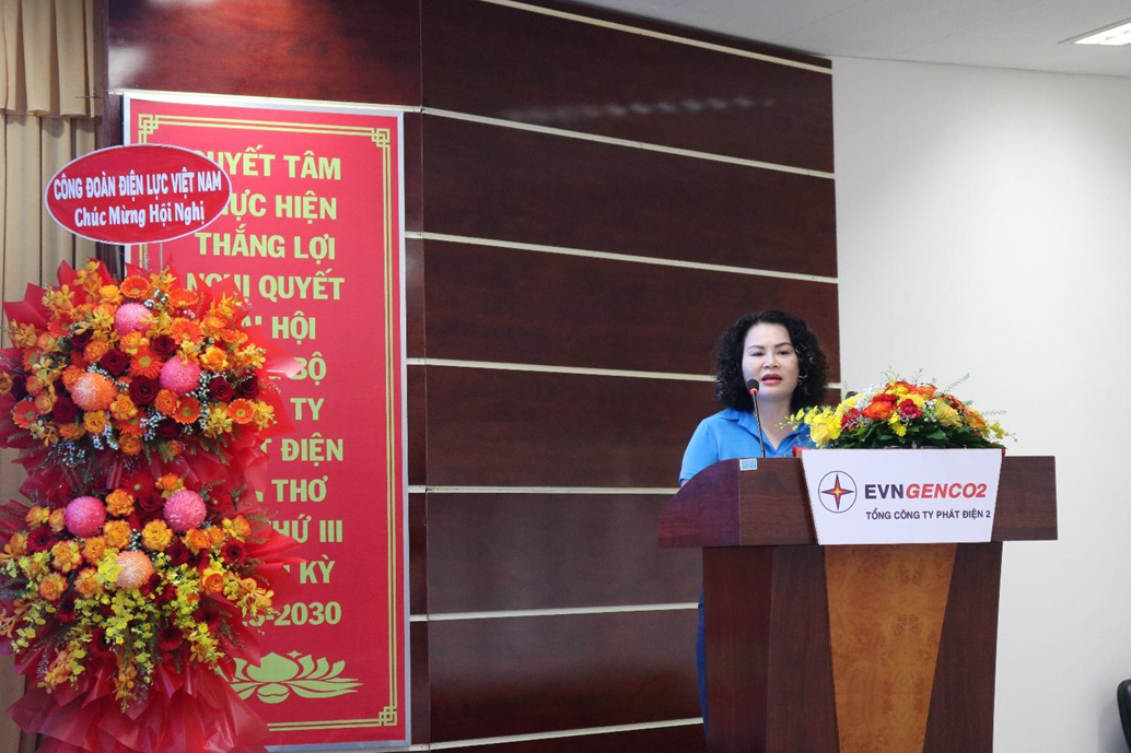 Phát biểu chỉ đạo tại Hội nghị, Bà Nguyễn Kim Thanh – Phó Chủ tịch Công đoàn Điện lực Việt Nam nhận xét: “Công đoàn Tổng công ty Phát điện 2 đã đồng hành cùng chuyên môn, triển khai đồng bộ các hoạt động, kết quả đạt được đã toàn diện và nổi bật”. Đồng thời, Lãnh đạo Công đoàn EVN đã nêu ra các định hướng đối với công tác Công đoàn trong thời gian tới, đó là: Tiếp tục phối hợp chặt chẽ với chuyên môn, quyết tâm hoàn thành nhiệm vụ sản xuất kinh doanh, chăm lo đời sống cho người lao động; Tiếp tục phát huy những hiệu quả của tháng Công nhân; Đẩy mạnh phong trào thi đua gắn với nhiệm vụ sản xuất kinh doanh; Đổi mới phương thức hoạt động của công đoàn, ứng dụng công nghệ số; Tập trung hướng dẫn chỉ đạo Công đoàn cơ sở trực thuộc tổ chức Đại hội Công đoàn cơ sở, hướng tới Đại hội Công đoàn Việt Nam lần thứ XIV.