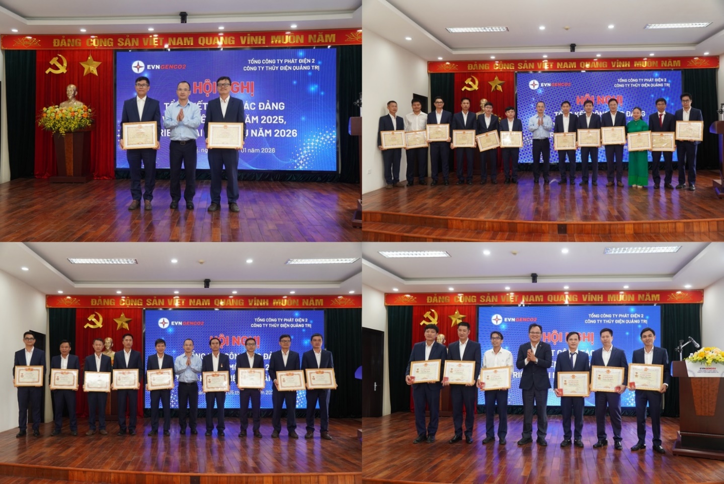 Trong khuôn khổ Hội nghị, Tổng công ty Phát điện 2 và Công ty Thủy điện Quảng Trị đã biểu dương, khen thưởng các tập thể và cá nhân có thành tích xuất sắc trong công tác Đảng và hoạt động sản xuất kinh doanh năm 2025. Đây là sự ghi nhận xứng đáng, đồng thời là nguồn động viên kịp thời để lan tỏa tinh thần thi đua lao động, góp phần xây dựng Công ty ngày càng phát triển bền vững.