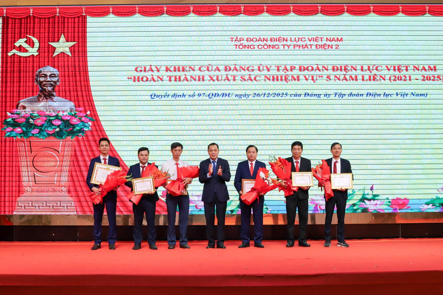 Đồng chí Đặng Hoàng An trao Giấy khen của Đảng ủy Tập đoàn Điện lực Việt Nam cho đảng viên đạt tiêu chuẩn “Hoàn thành xuất sắc nhiệm vụ” 5 năm liền (2021 - 2025)