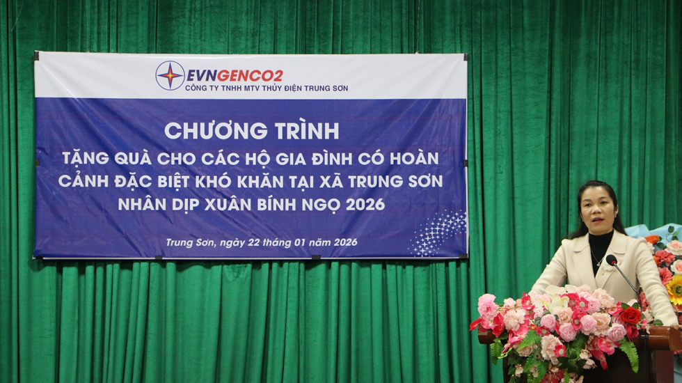 Phát biểu tại chương trình, bà Hà Thị Nga – Bí thư Đảng ủy, Chủ tịch HĐND xã Trung Sơn nhấn mạnh: “Chăm lo cho các hộ gia đình có hoàn cảnh khó khăn luôn là chủ trương lớn của Đảng và Nhà nước, đồng thời là trách nhiệm của cả hệ thống chính trị và toàn xã hội. Trong những năm qua, xã Trung Sơn luôn trân trọng sự đồng hành, hỗ trợ thiết thực và nghĩa tình của Công ty TNHH MTV Thủy điện Trung Sơn đối với địa phương, đặc biệt trong công tác an sinh xã hội. Những phần quà trao tặng hôm nay tuy không lớn về giá trị vật chất nhưng mang ý nghĩa tinh thần sâu sắc, góp phần động viên các gia đình vượt qua khó khăn, đón Tết Xuân Bính Ngọ 2026 đầm ấm, đủ đầy hơn.”
