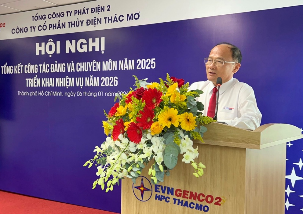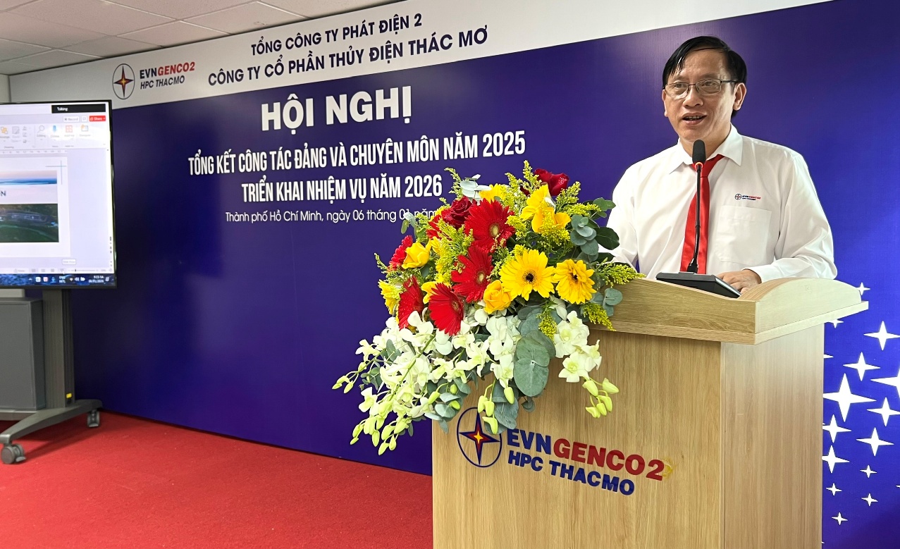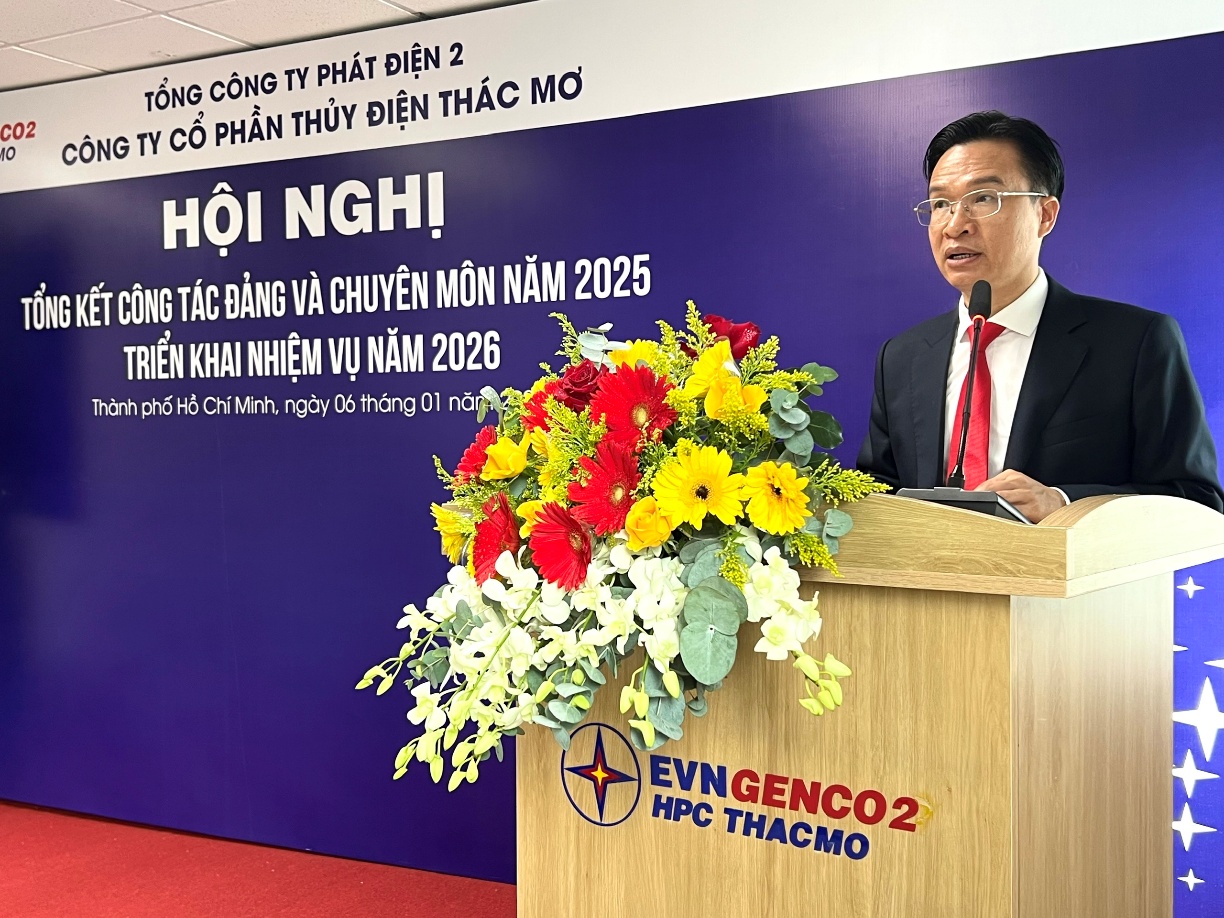 Phát biểu chỉ đạo tại Hội nghị, đồng chí Trần Phú Thái – Bí thư Đảng ủy, Chủ tịch HĐQT EVNGENCO2 ghi nhận và đánh giá cao những kết quả Đảng bộ và tập thể Công ty CP Thủy điện Thác Mơ đã đạt được trong năm 2025; đồng thời định hướng Công ty tiếp tục phát huy vai trò lãnh đạo của tổ chức Đảng, nâng cao hiệu quả quản trị doanh nghiệp, đẩy mạnh ứng dụng khoa học – công nghệ và chuyển đổi số trong thời gian tới.