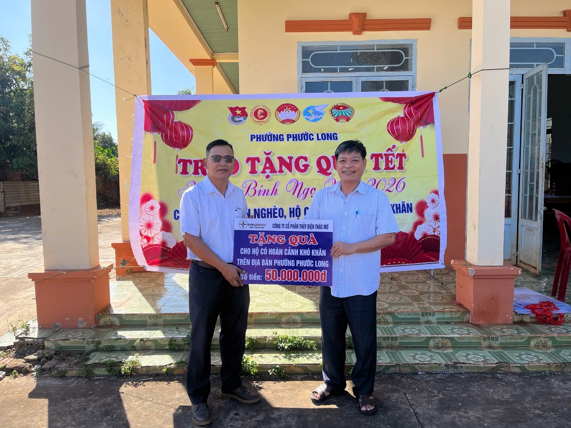 Thực hiện Kế hoạch công tác Tết năm 2026, TMP đã tổ chức các đoàn công tác do lãnh đạo Công ty chủ trì, phối hợp với Công đoàn, Đoàn Thanh niên và các phòng, đơn vị trực thuộc, trực tiếp đến thăm hỏi, trao quà tại các địa bàn: xã Phú Nghĩa, Nghĩa Trung, Bù Đăng, Bom Bo, Bù Gia Mập, phường Phước Long, Phước Bình và một số địa phương lân cận.