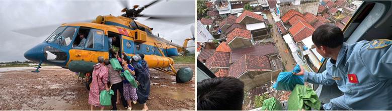 Trong những ngày cao điểm ứng phó mưa lũ diện rộng, Bộ Quốc phòng đã điều động 44.668 lượt cán bộ, chiến sĩ và 3 máy bay trực thăng để thả hàng cứu trợ xuống các vùng bị cô lập. Lực lượng công an huy động gần 100.000 lượt cán bộ, chiến sĩ bám địa bàn, đảm bảo an ninh trật tự và cứu hộ, cứu nạn.